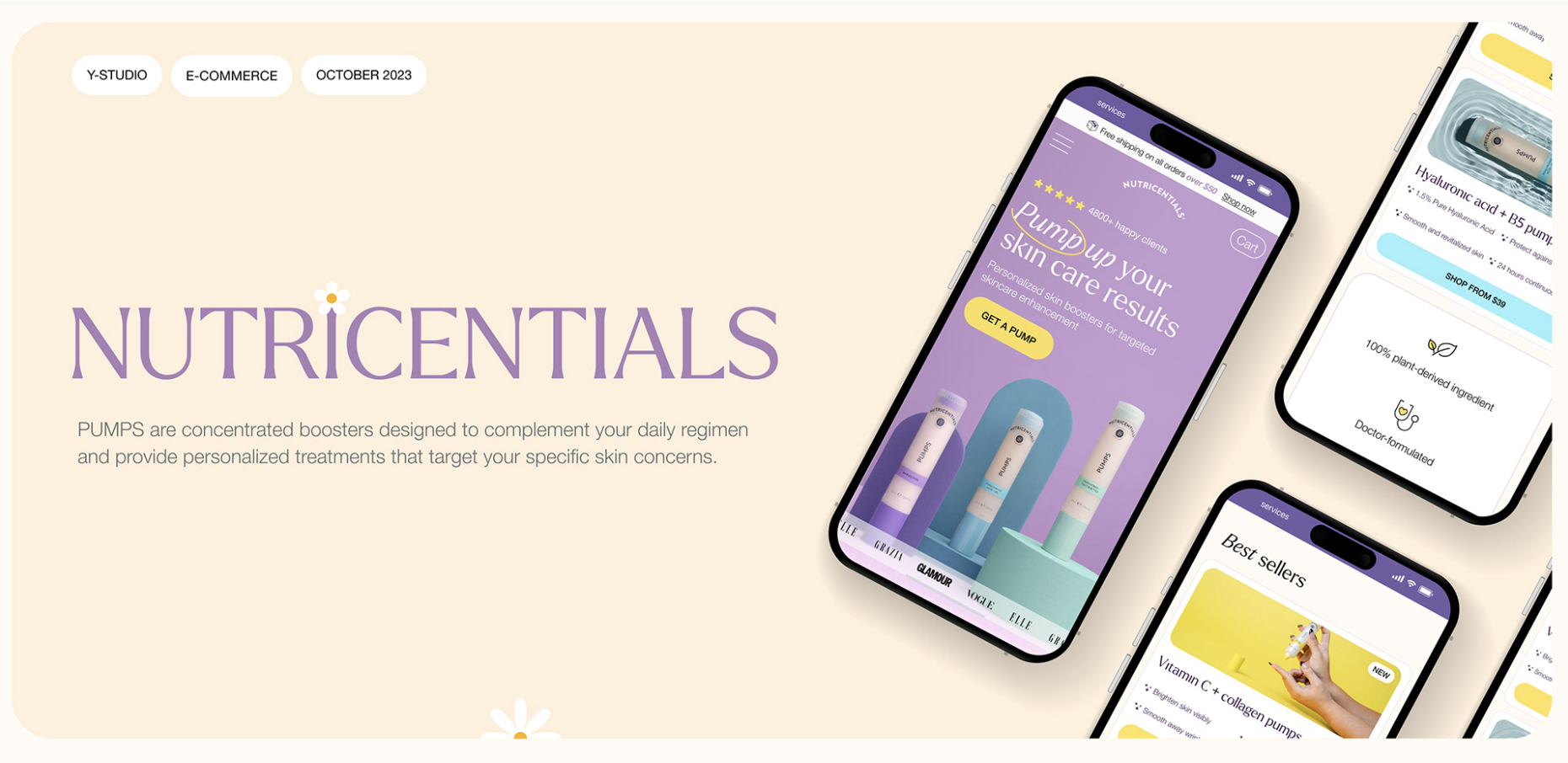 Cosmetics brand emphasize the gentleness and softness of their products, using a pastel palette. By Yuliia Mykhailova via Behance