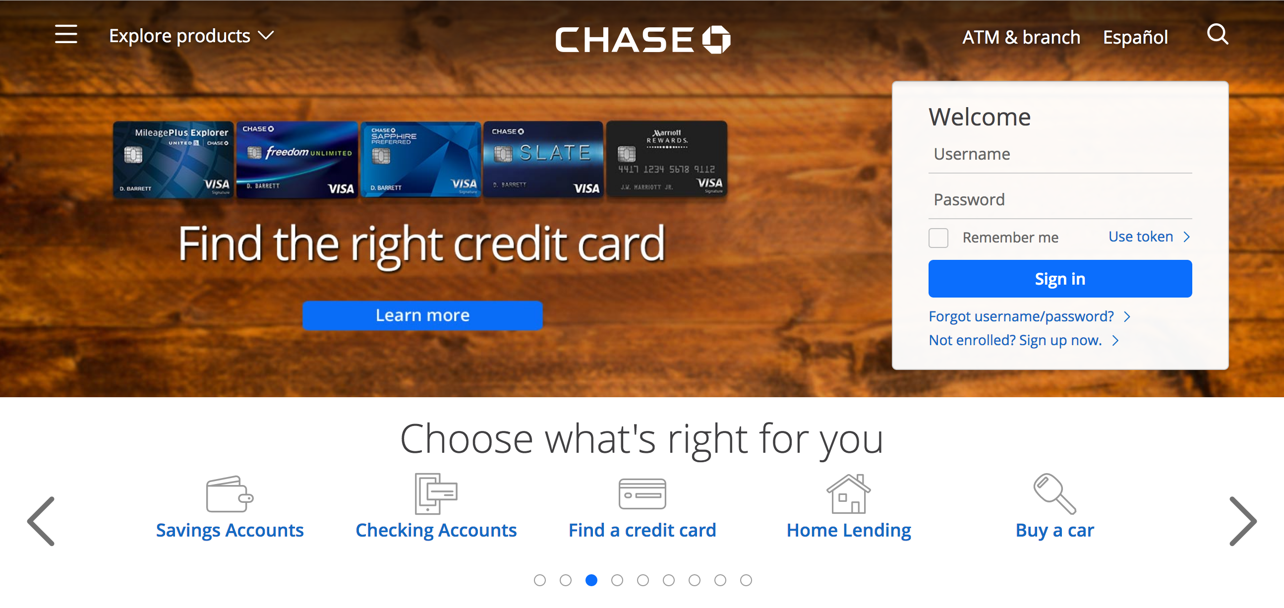When it comes to handing over all your money to someone, trust is paramount. That’s why there’s so much blue on the website for Chase Bank, and other financial institutions.