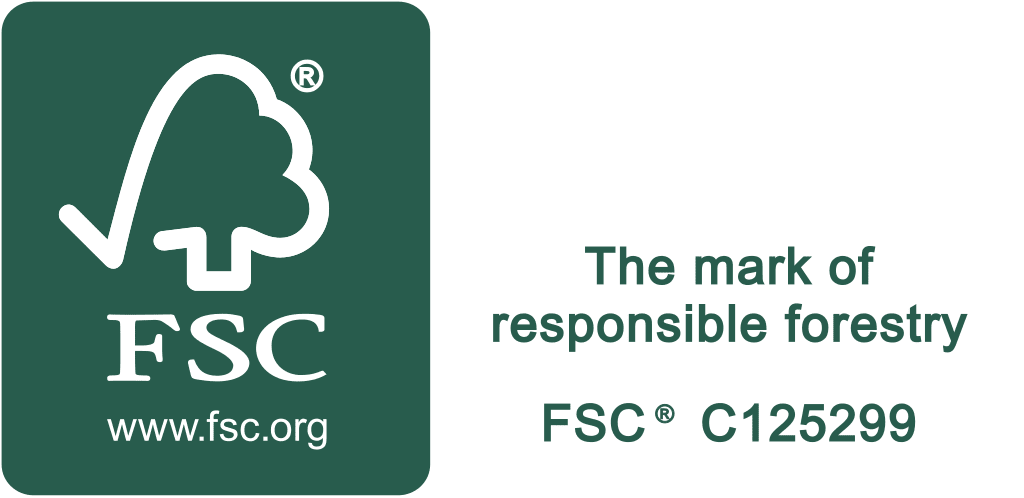 When a company has received an official certification, then products are marked with the official FSC® logo (the ‘tick tree’). Only products that have been assessed and approved are allowed to show this mark, so you can rest assured that your product has come from an FSC® certified forest or from FSC® approved recycled material.