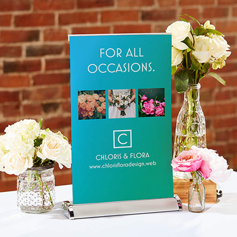 For example, a florist showcasing their products would likely invest in a sign or banner, business cards and folded leaflets for promoting their specific products at events.