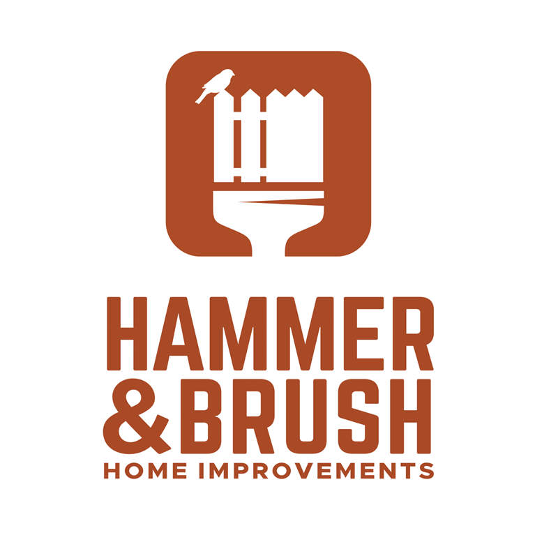 One of the most tried-and-true places to display your logo is on a business card — try adding spot gloss or a premium finish for an especially eye-catching element. Here, Hammer & Brush uses embossed gloss on their main logo motif, a combination paint brush/fence design, to really make it stand out.