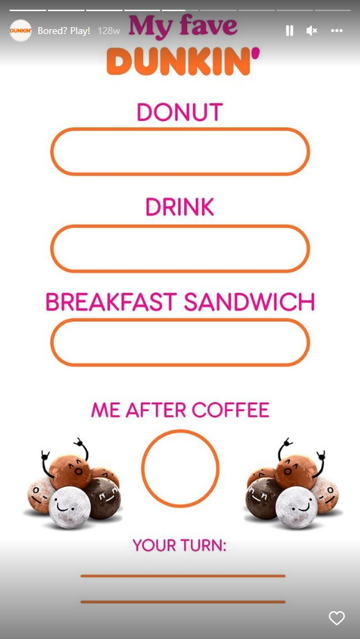 Branded filters and shareable, easily personalised images are a great way to engage with your followers. Image via Dunkin’