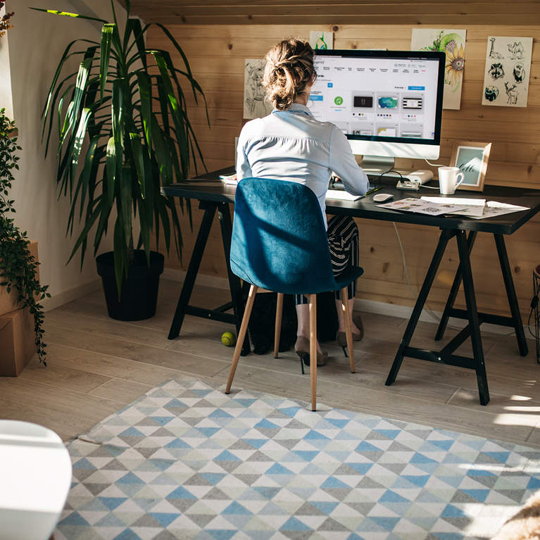 When setting up your workspace, try to think about your needs. It’s great to have the option of working from the sofa, but if you need access to your phone, computer and a notebook, it’s much better to have a surface or table to work at. This will help keep you organised and get you into the right headspace for working.