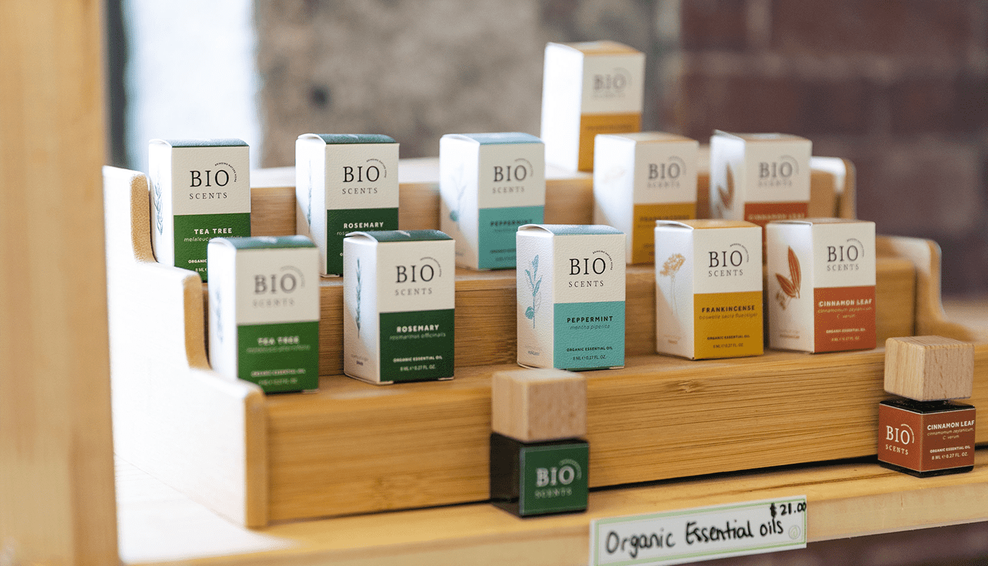 Maria reflects Uvida Shop’s eco-friendly mission in her window display. “We currently have real moss on our window display shelves for decorating purposes, and it’s really helpful in getting the message out to our customers that we are a natural-products store.”