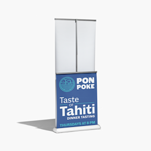When you need a sign that looks good from every angle, turn to our double-sided roller banners. Each display includes two separate banners, helping you connect with people approaching from either direction. Choose the same design on both sides or create two different looks for maximum impact. Now available in 3 PVC-free materials, plus an anti-scratch protective varnish that keeps your graphics looking crisp and polished, your roller banner is built to last — without compromising style or sustainability.