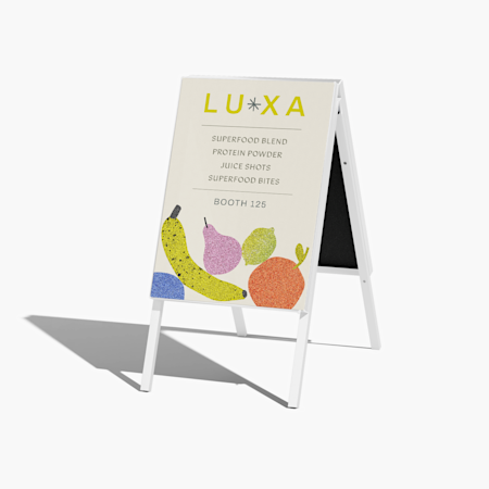 Whether you’re looking for permanent, weather-resistant signage or temporary, portable messaging, VistaPrint has a selection of pavement signs for you to choose from. For example, our waterbase signs are a great option for displaying your business name, opening hours and contact info all year round. Whereas our chalkboard signs are ideal for messages that change on a regular basis, like menus or daily offers. A-Frames make a great choice if you’re promoting your business on the road or at markets and events due to their lightweight and portable frames.