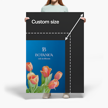 Big ideas deserve to be seen. Make your message impossible to miss with custom posters from VistaPrint. Whether you’re promoting a sale, launching a new product or adding personality to a blank wall, our poster printing service makes it easy to share your message your way. Choose from a wide range of materials, finishes and sizes — from handy A4 posters to striking billboard posters — and get your design printed with professional quality and precision.