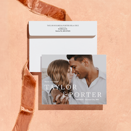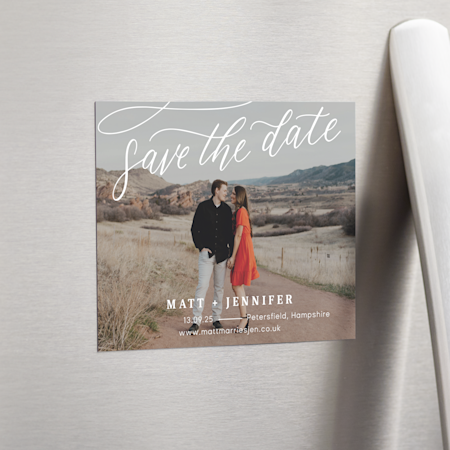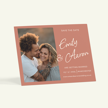 Dive into our gallery where you can browse a wide range of styles: modern, bohemian, elegant, rustic, retro and more. Plus, templates for photo save the dates make it easy to add snapshots of you and your sweetheart alongside custom text. For a useful and interactive touch, you can even add a QR code that links to your wedding website. Once you're finished, simply choose from one of our high-quality paper stocks, place your order and we'll take care of the rest. Your personalised wedding save the dates will arrive printed with all your custom touches, ready to send out near and far.